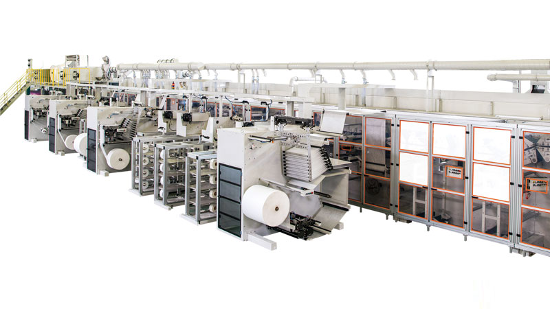 The machine relies on advanced technologies ensuring precision in forming the diaper’s internal layers.